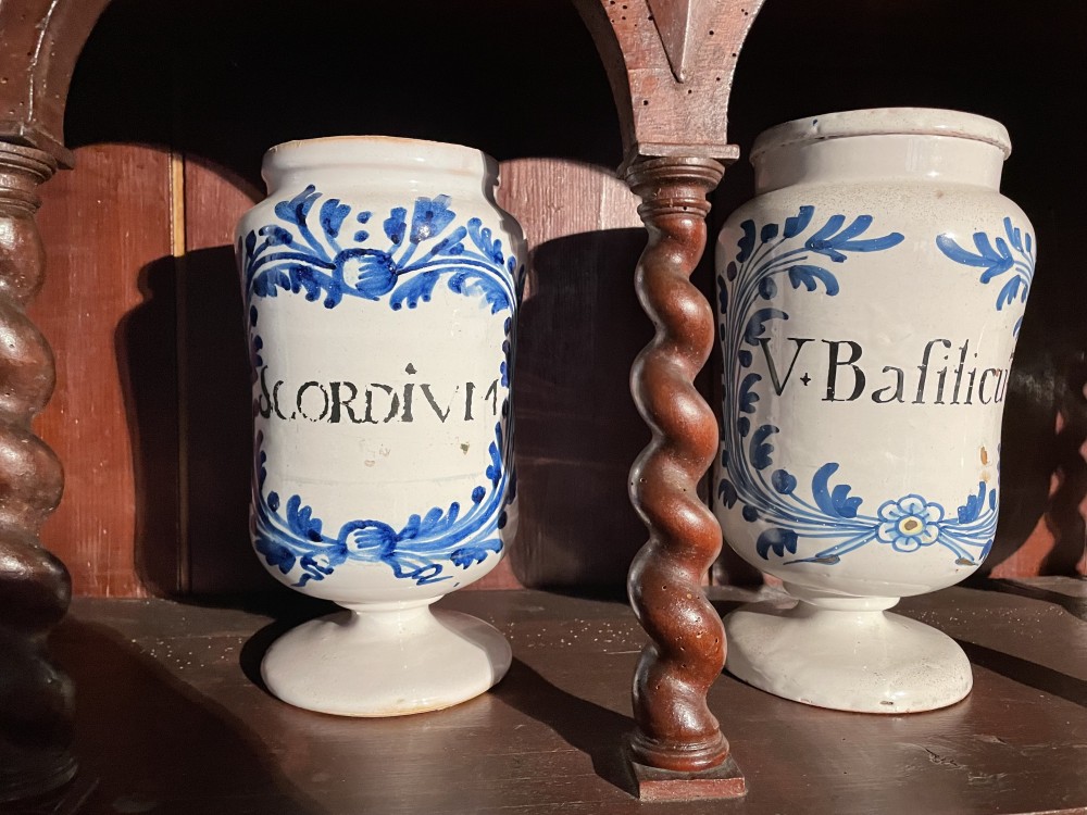L’apothicairerie est installée dans les bâtiments anciens. On la voit dans son état d’origine(1691).
