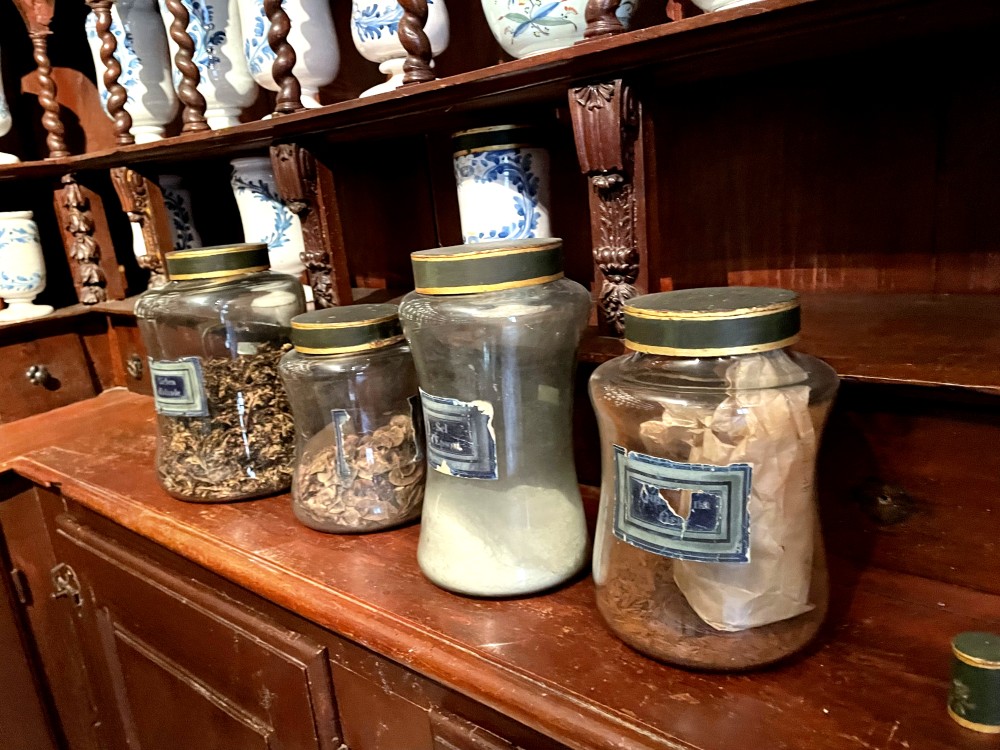 On peut y voir plus de 200 pots en faïence auxquels il faut ajouter une quinzaine de pots en verre.