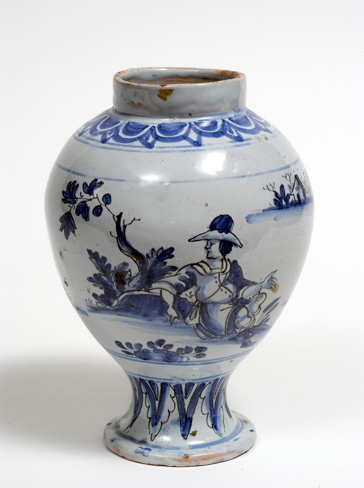 Ces pots de la fin du XVIIème, contrairement à ce que l’on observe dans la plupart des apothicaireries bourguignonnes ne forment pas un ensemble homogène, c’est le caractère particulier de ce joyau. Les formes, les décors montrent qu’ils proviennent pour la plupart des manufactures de Nevers (réf. Nicole Autissier, juillet 1995).